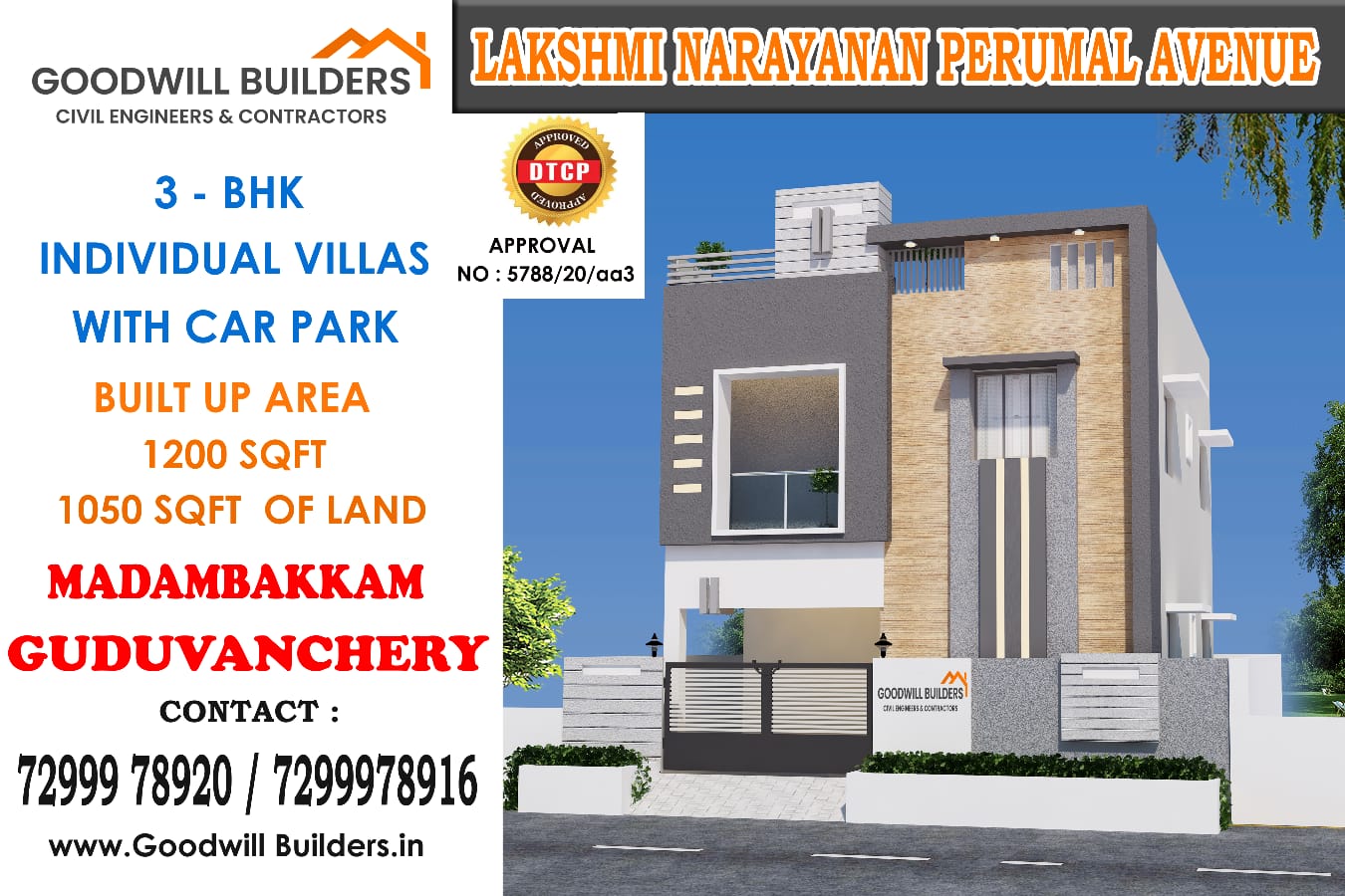 Goodwill Builders was established in the year of 1991 at Chennai by K.Srinivasan, a Civil Engineer with 19 years of experience on infrastructural related business. Goodwill Builders is a brain child of group of qualified, talented and experienced entrepreneurs driven by core values of integrity, commitment and loyalty to customers.